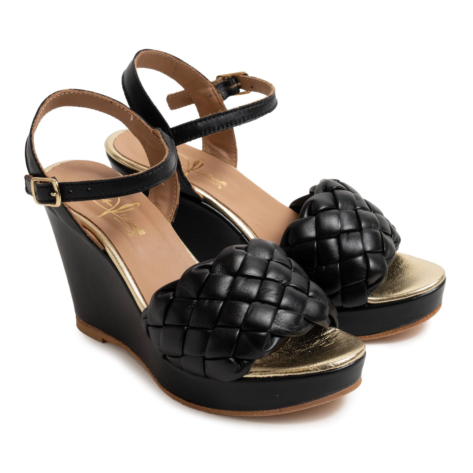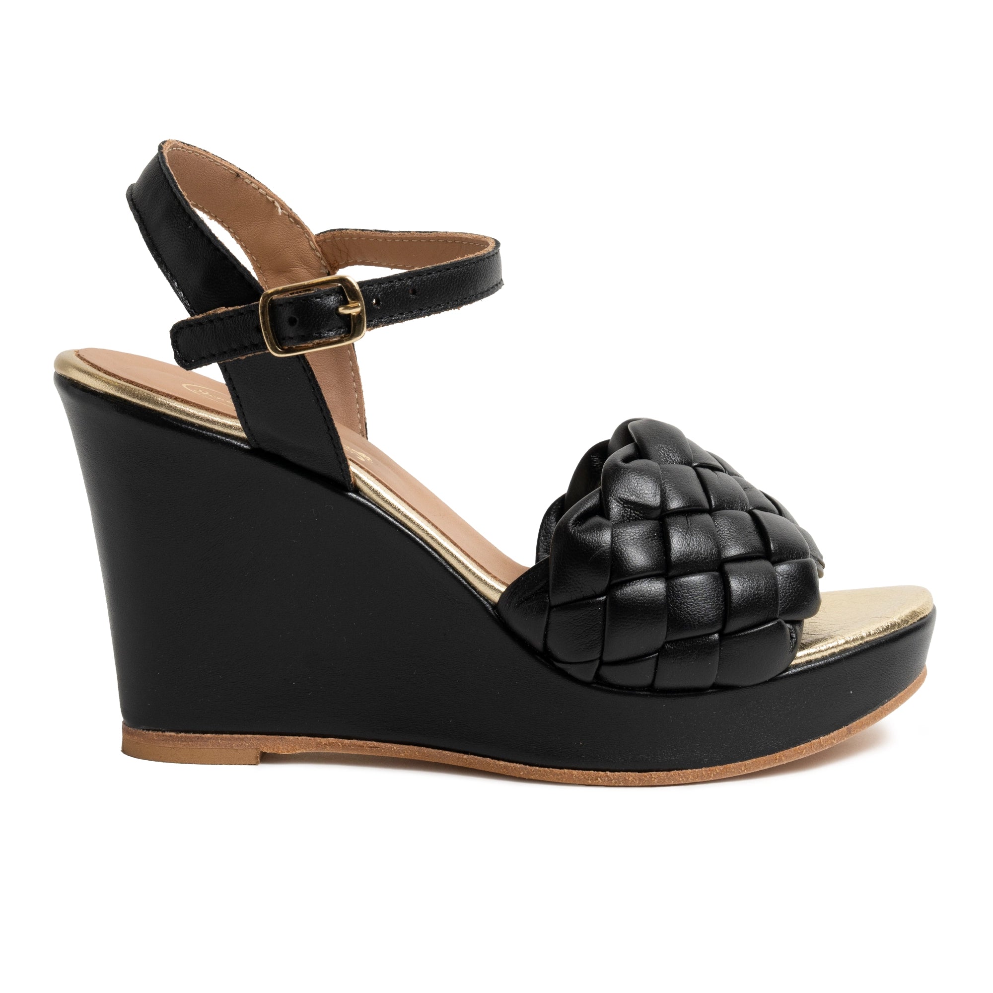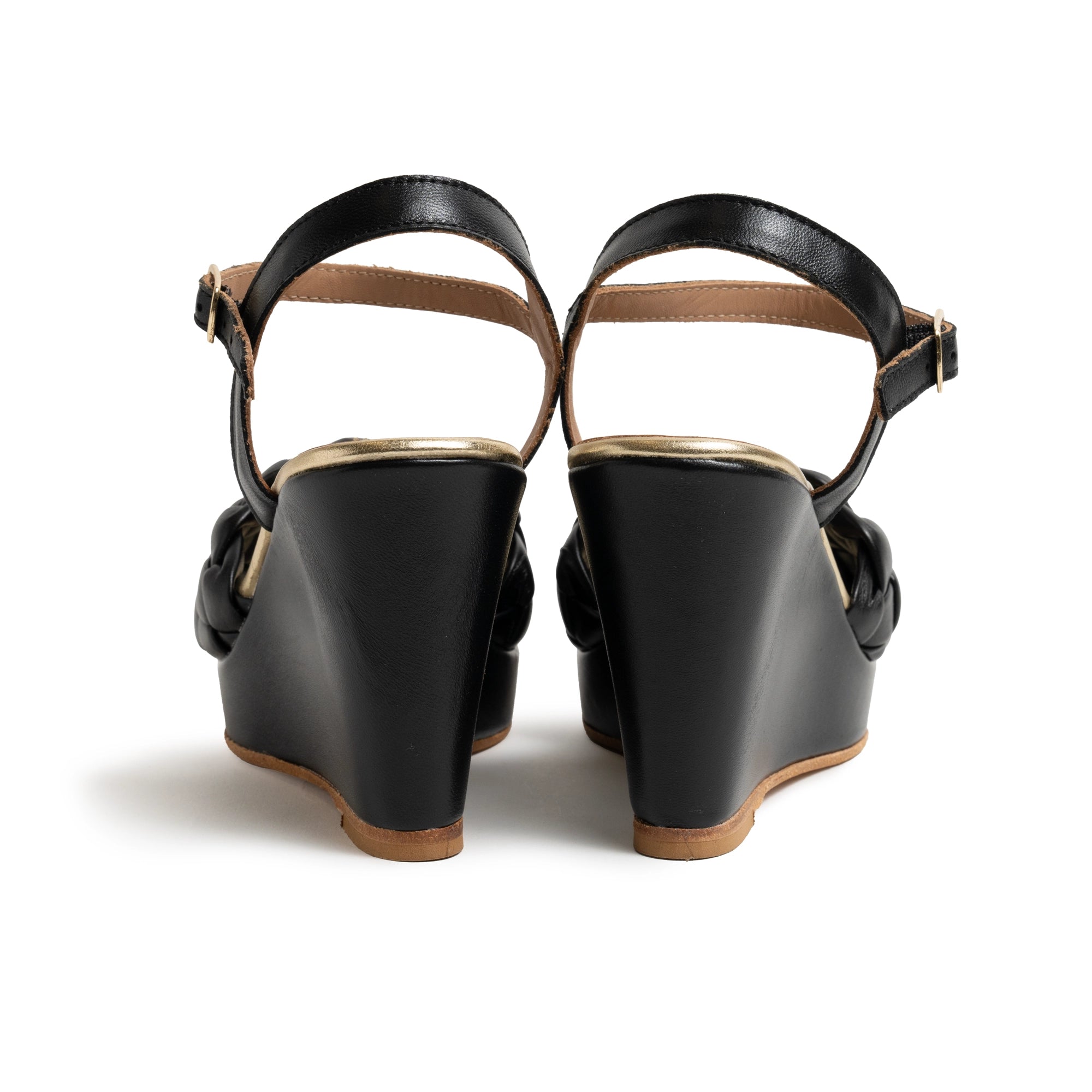 Women Platform Leather Intrecciato Wedge in Nappa Black