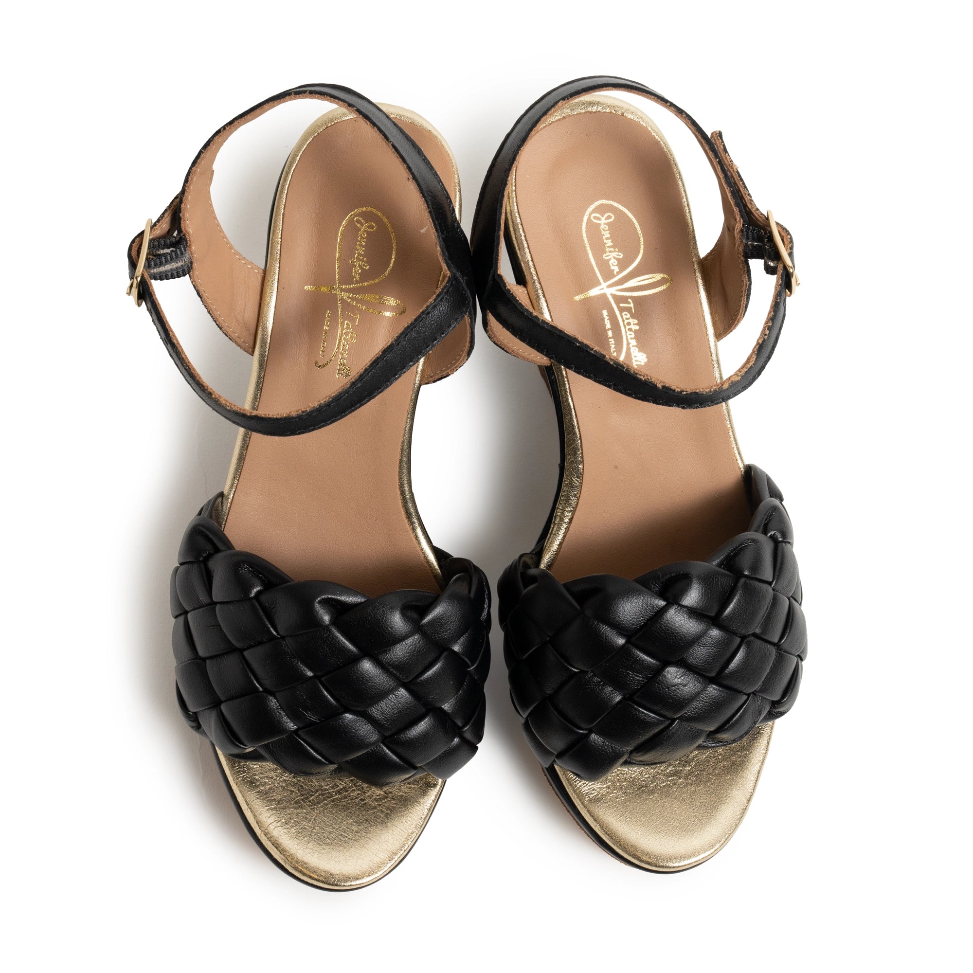 One of Jennifer Tattanelli's favorite Summer sandals, the Women's Platform Leather Intrecciato Sandals in Nappa Black are an essential wardrobe piece now in this new crossover style.