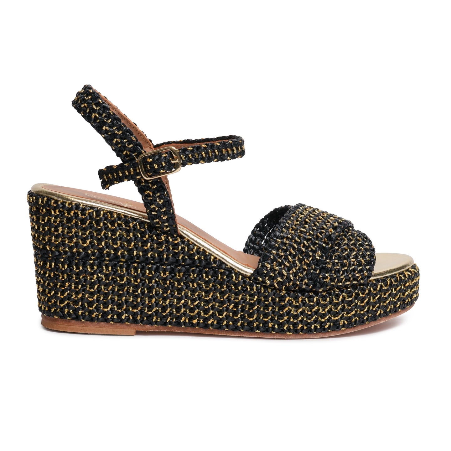 Women Platform Wedge Comfy Crossover Sandals in Black and Gold