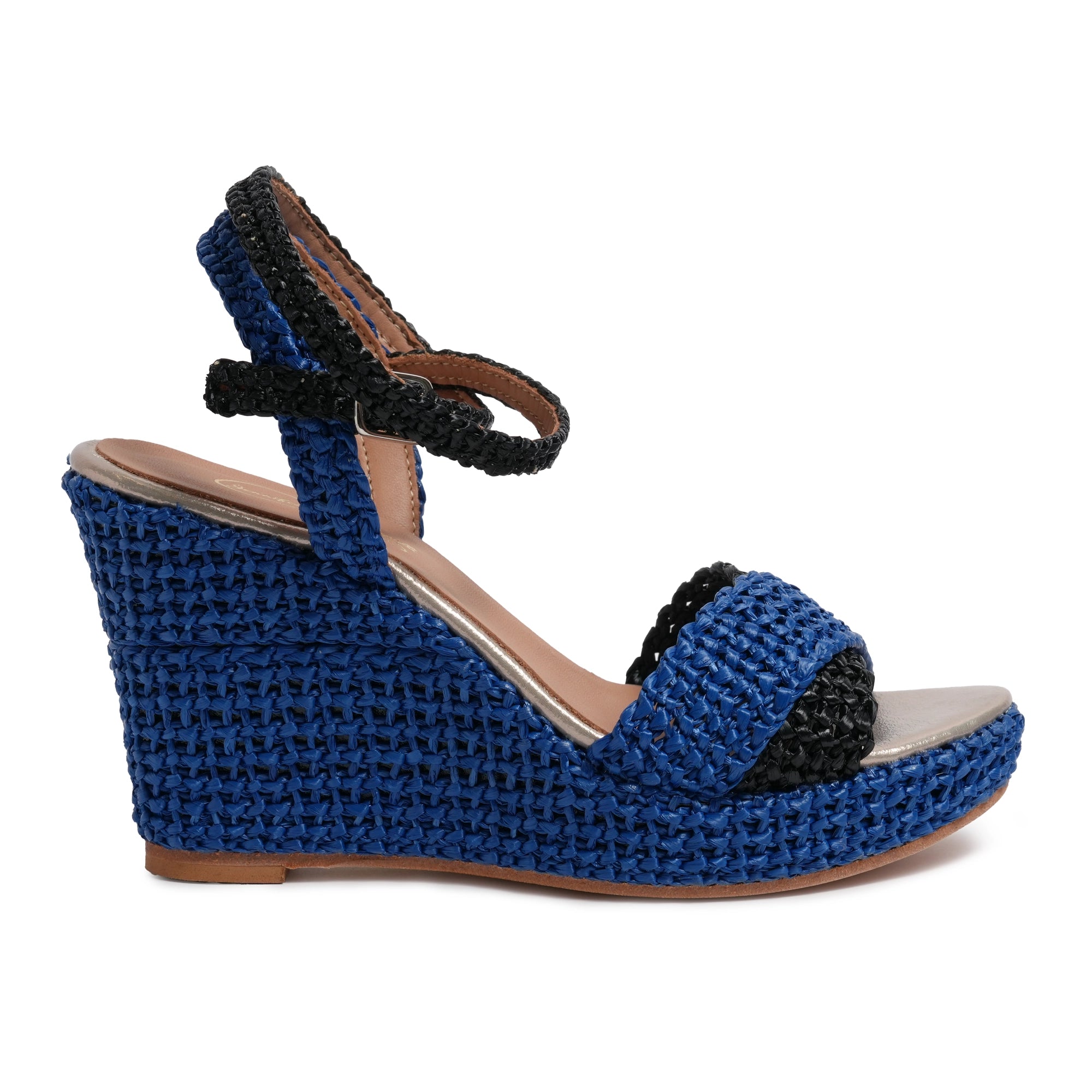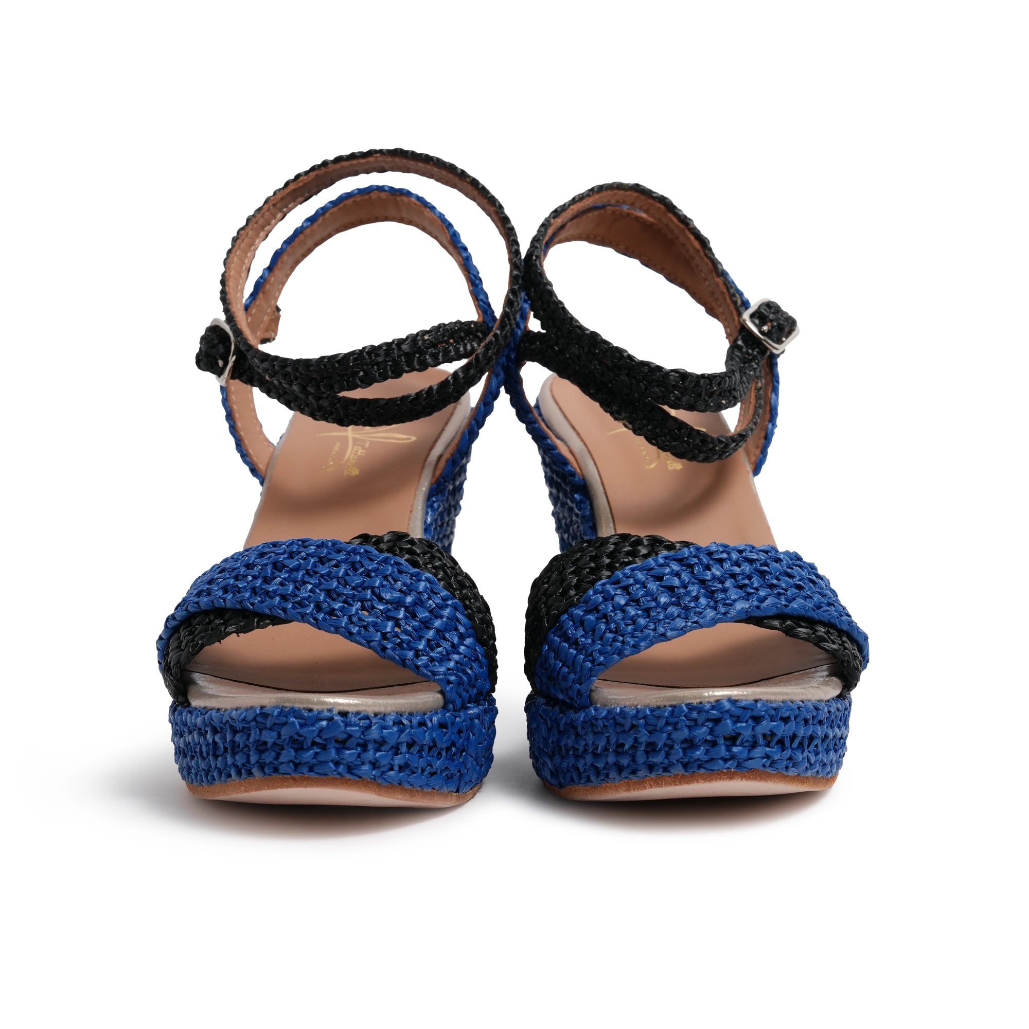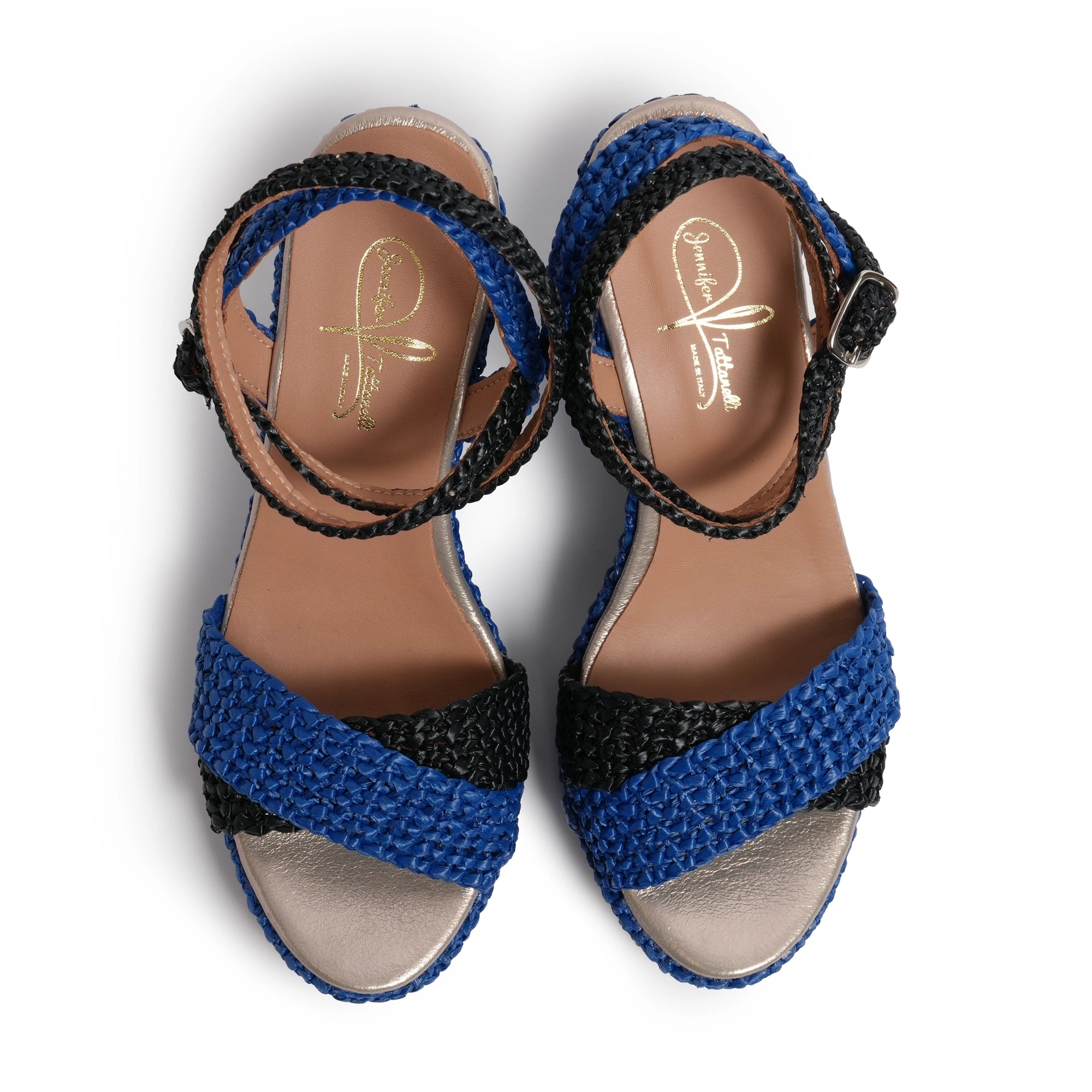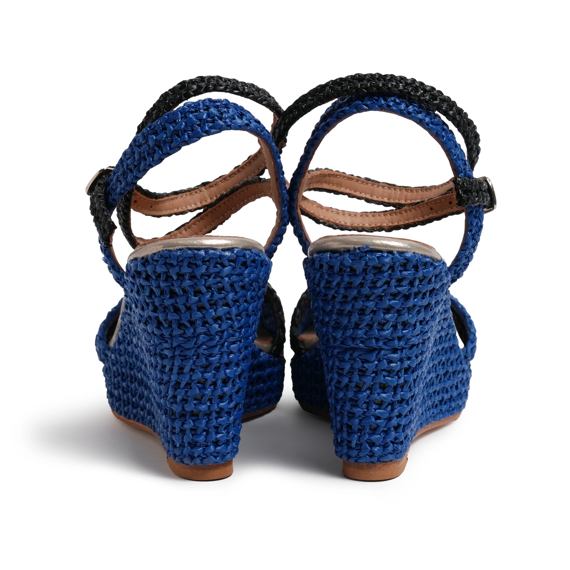 Women Platform Wedge Crossover Sandals in Blue and Black