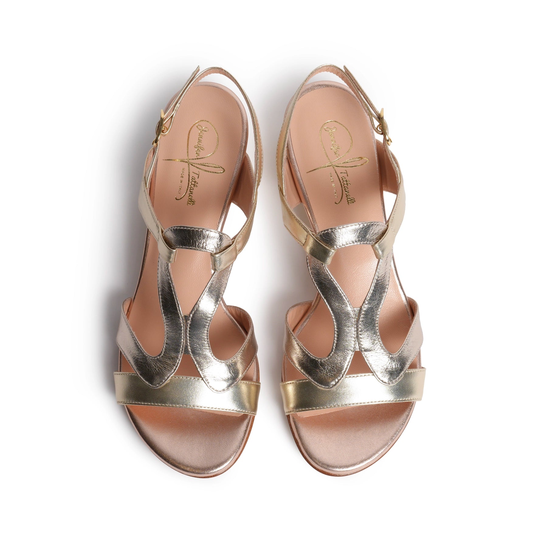 Another one of Jennifer Tattanelli's best-selling favorites, the Women's Roman Sandals in Laminated Beige Platinum make a great impression on friends with their refined look. The combination of metallic, suede and patent leather results in a masterpiece shoe.
