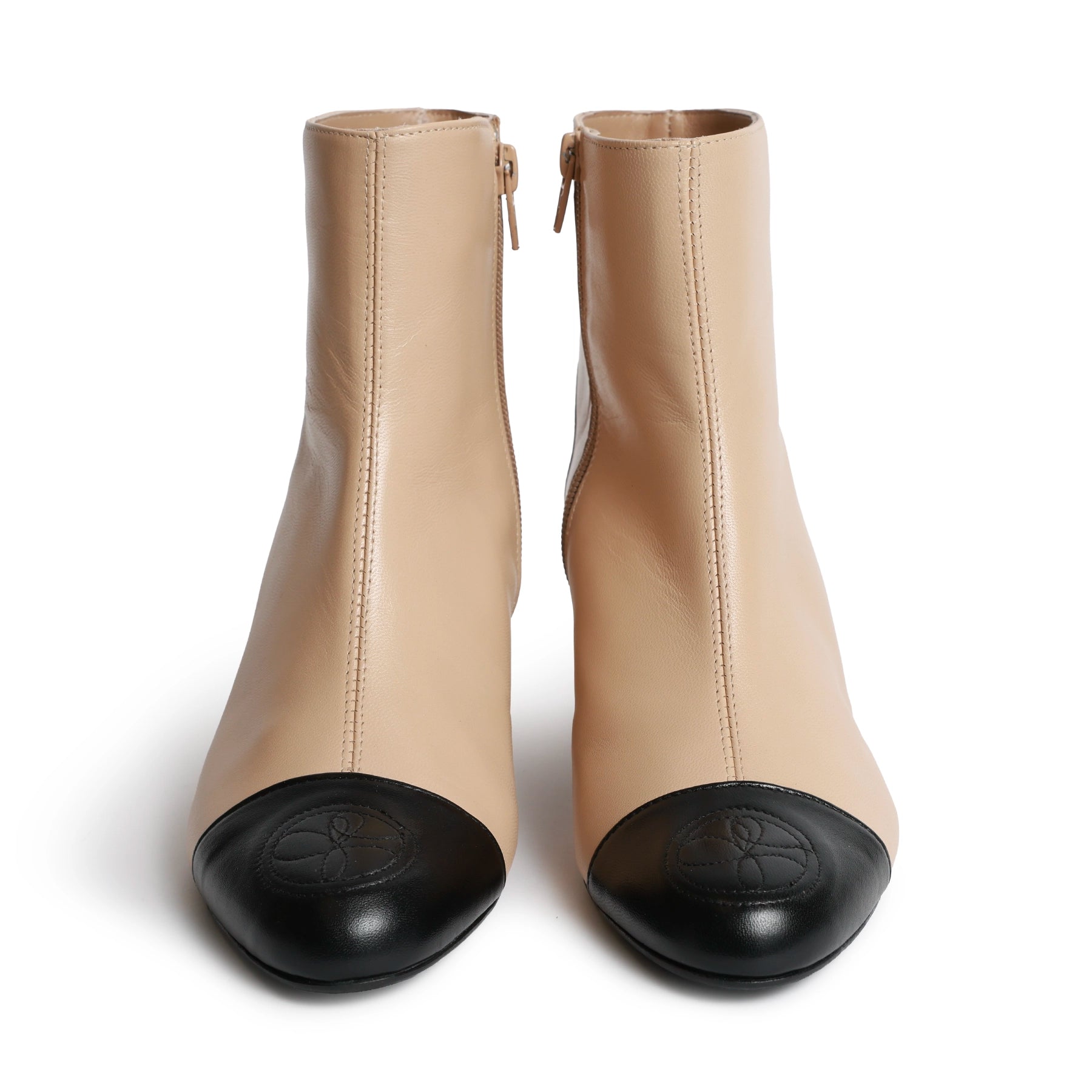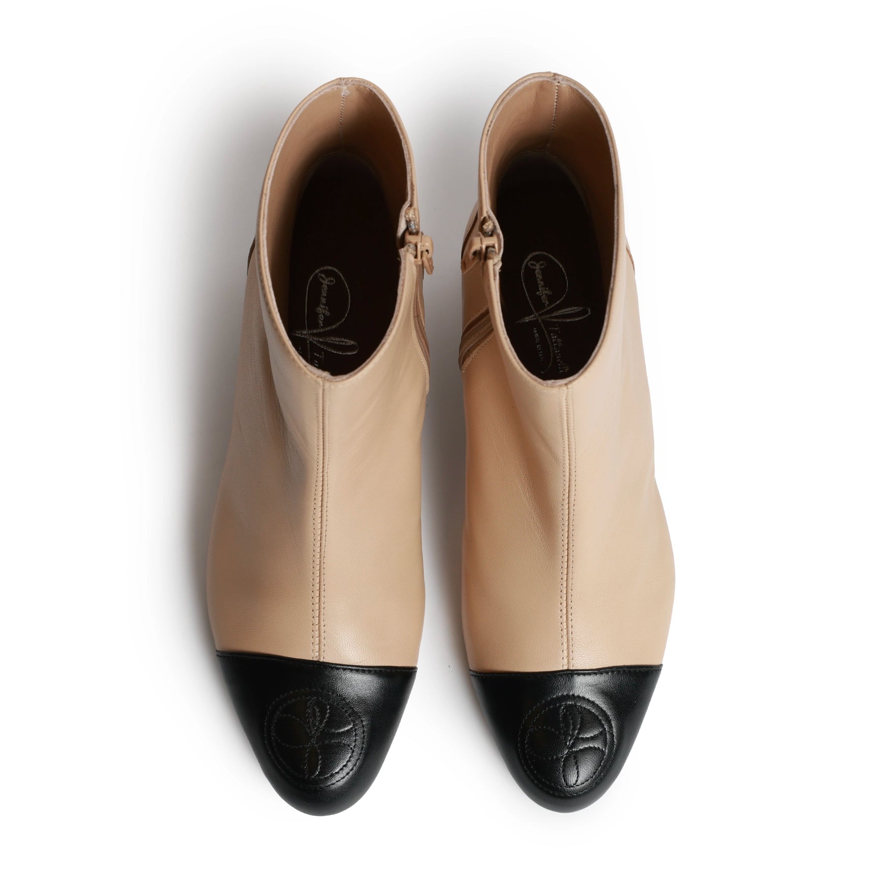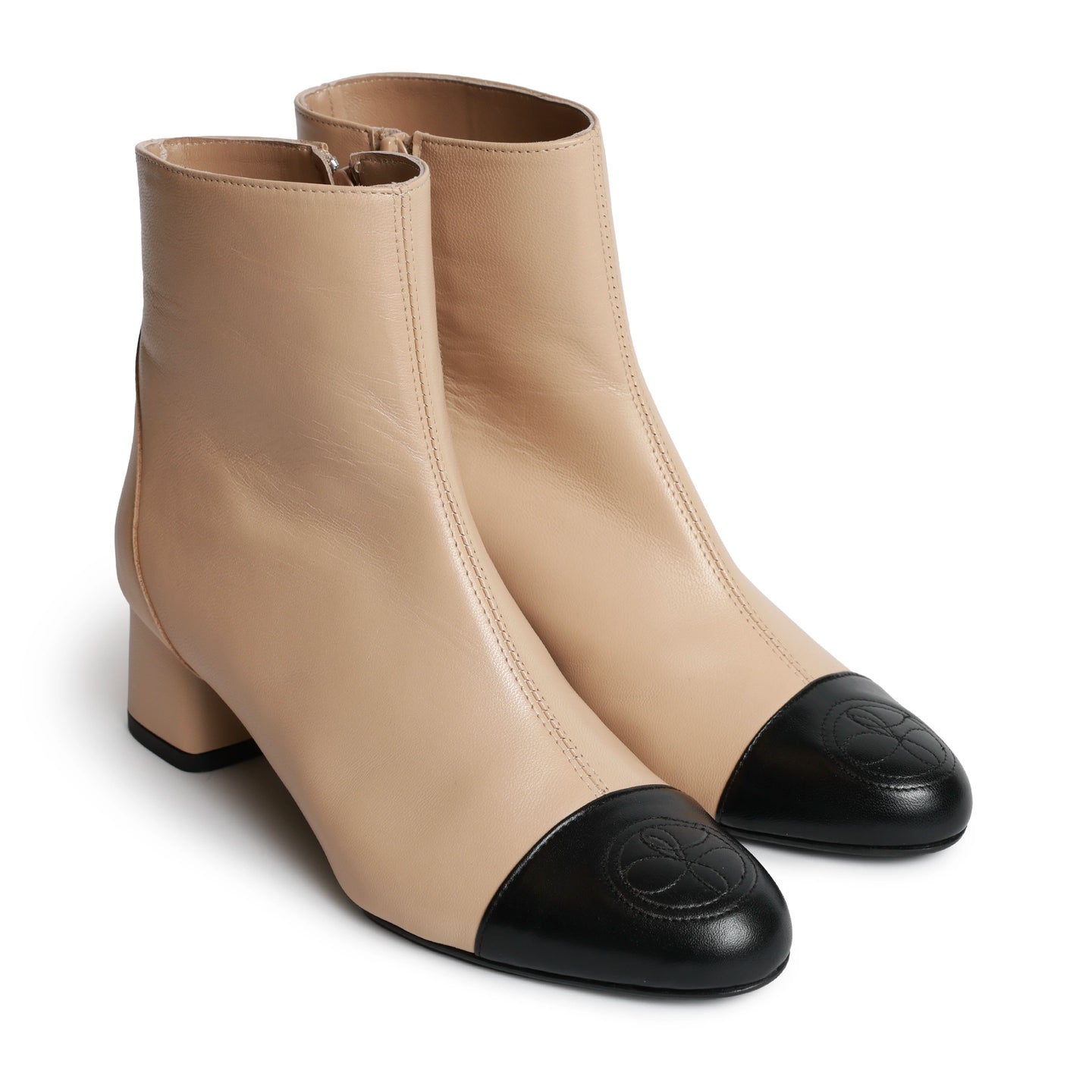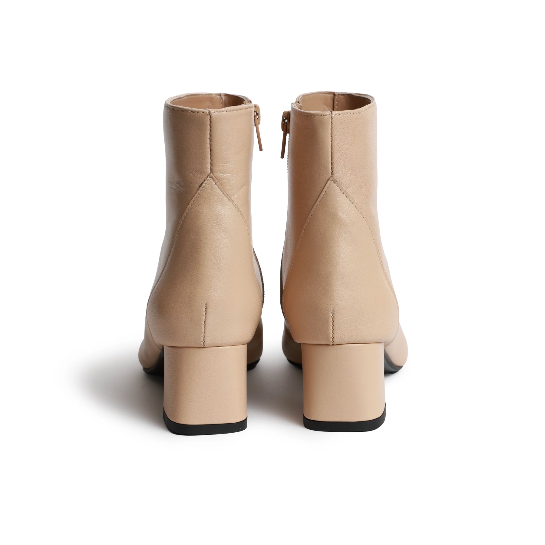 Women’s Nappa Leather Block Ankle Booties in Beige