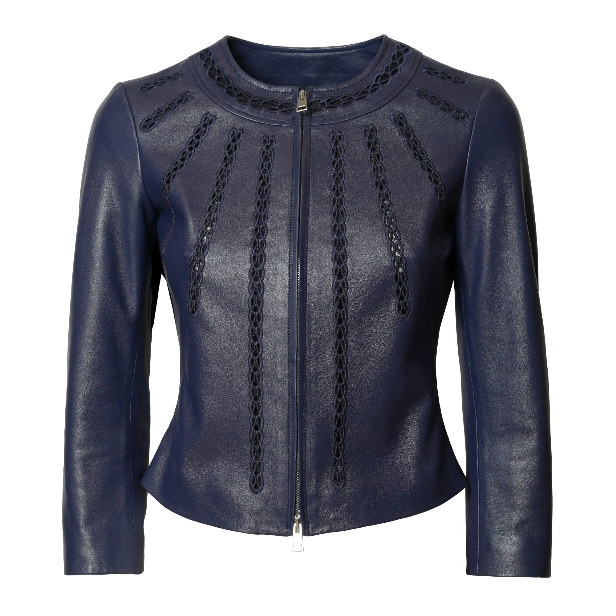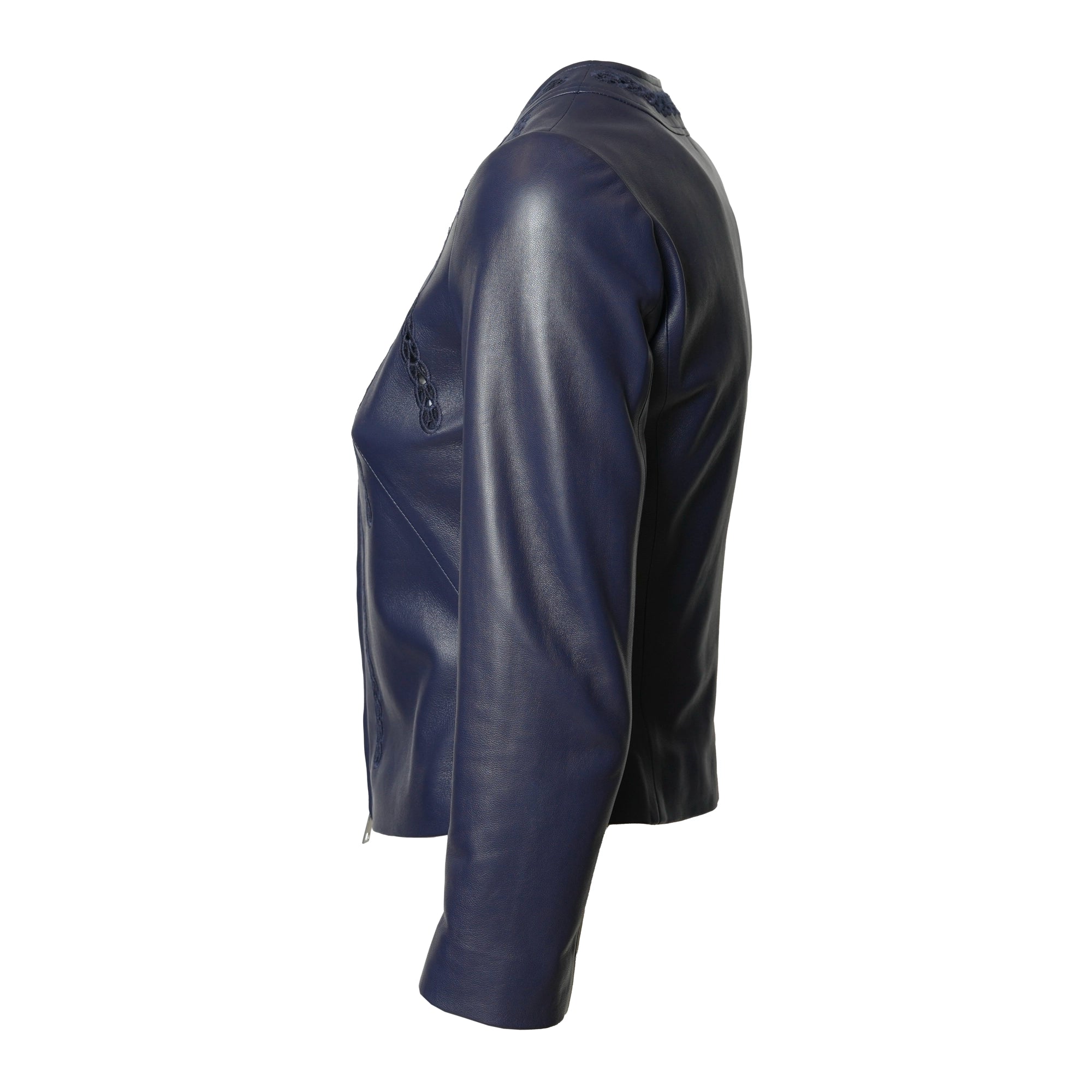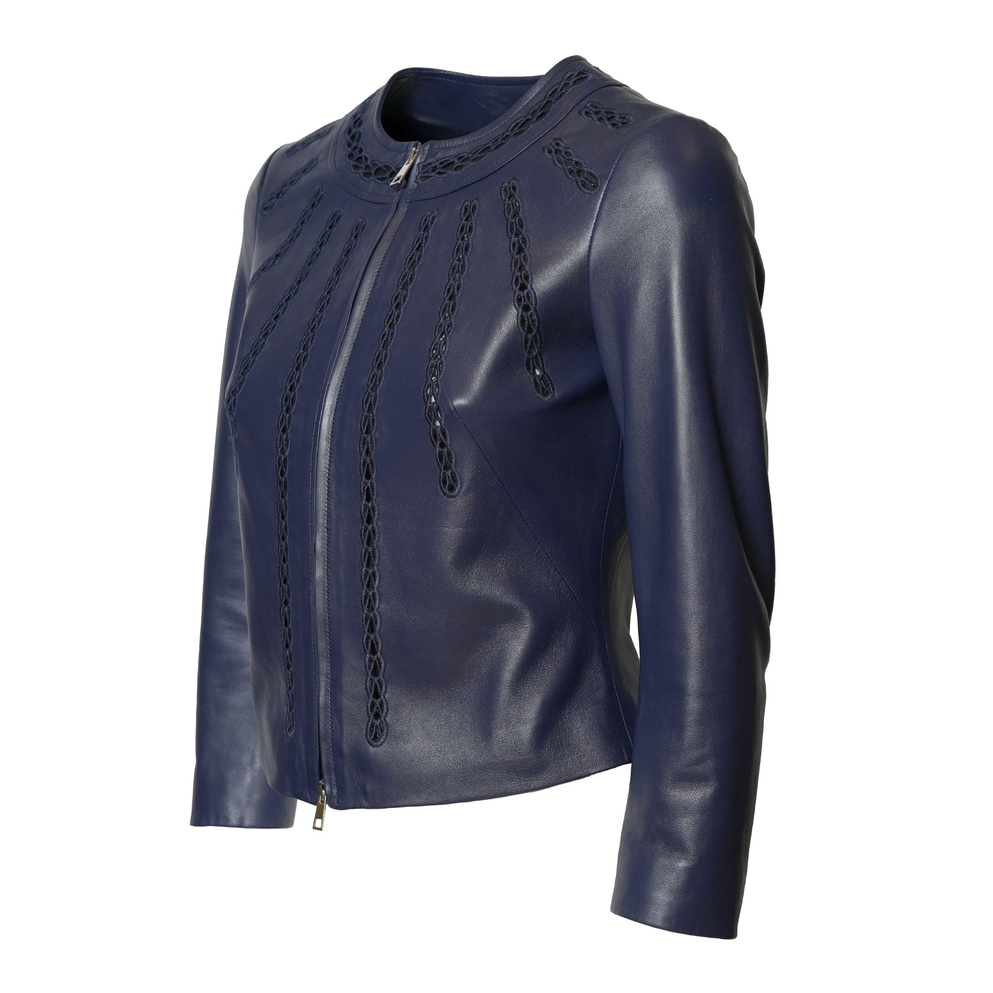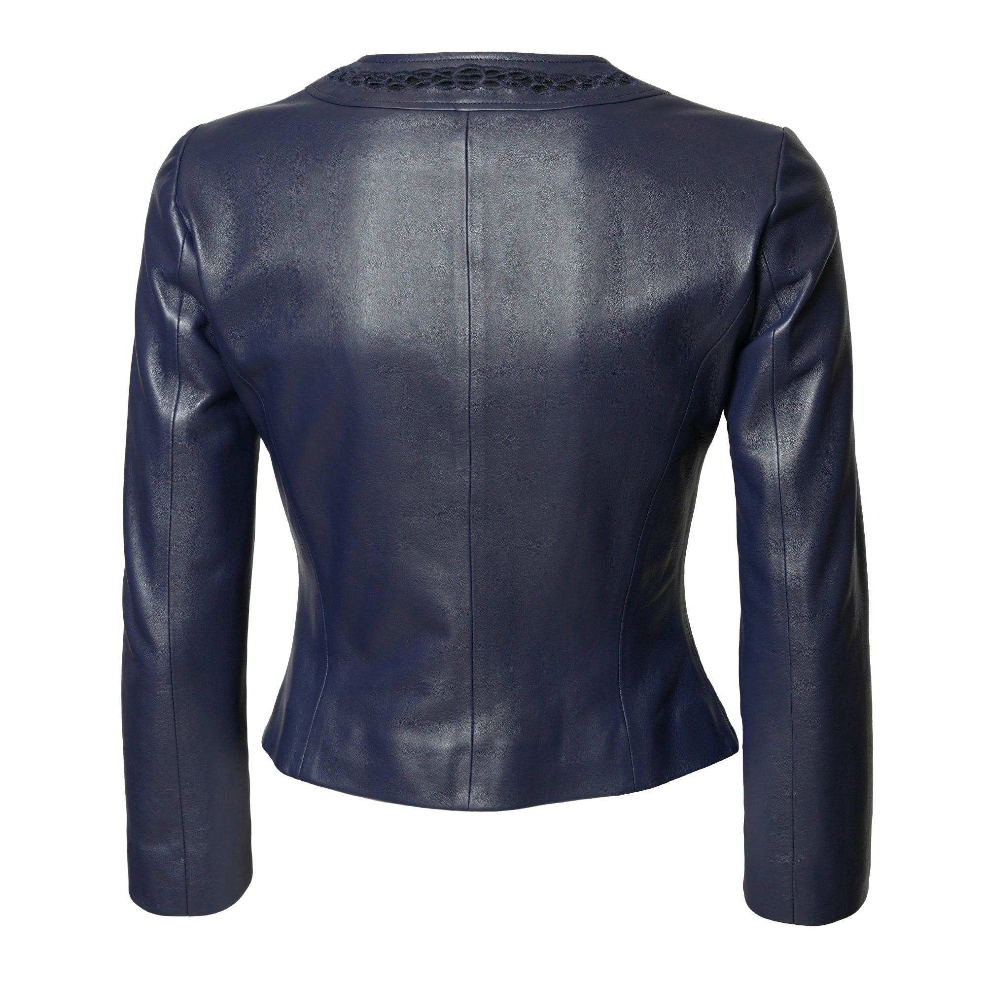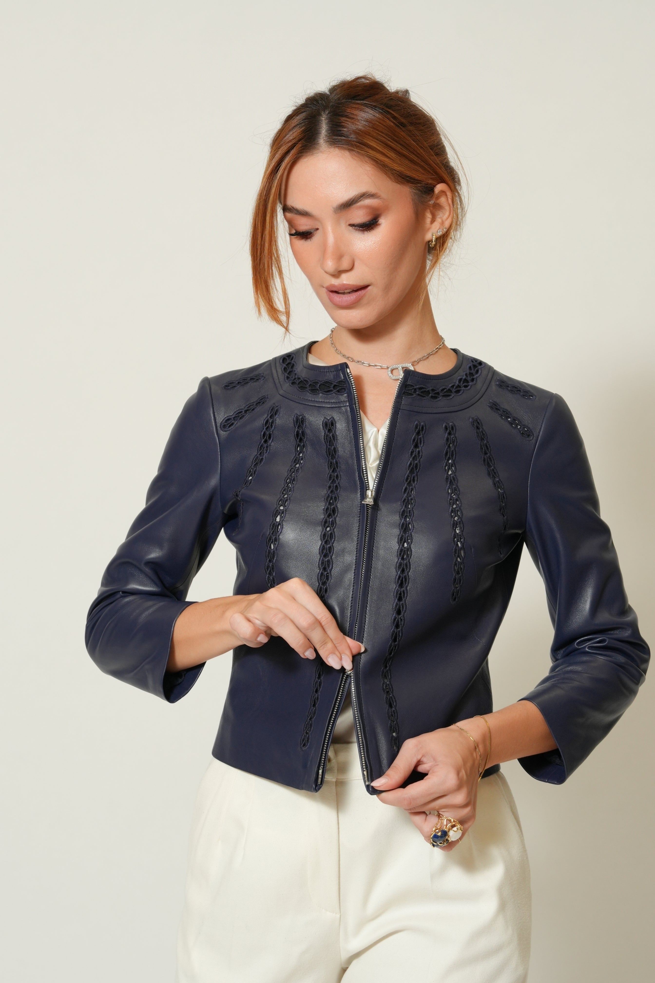 Women Short Leather Jacket with Embroidery in Nappa Carta da Zucchero