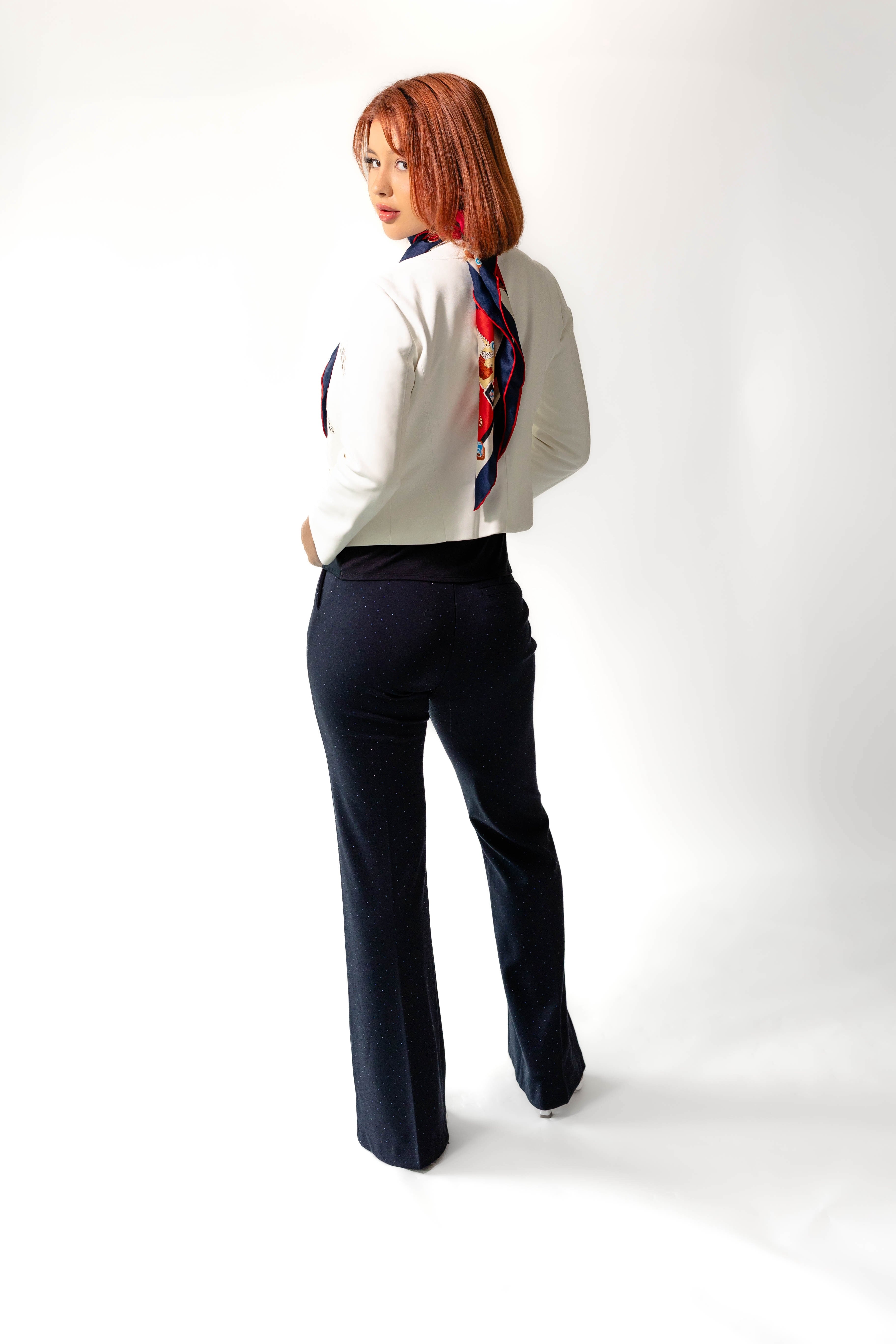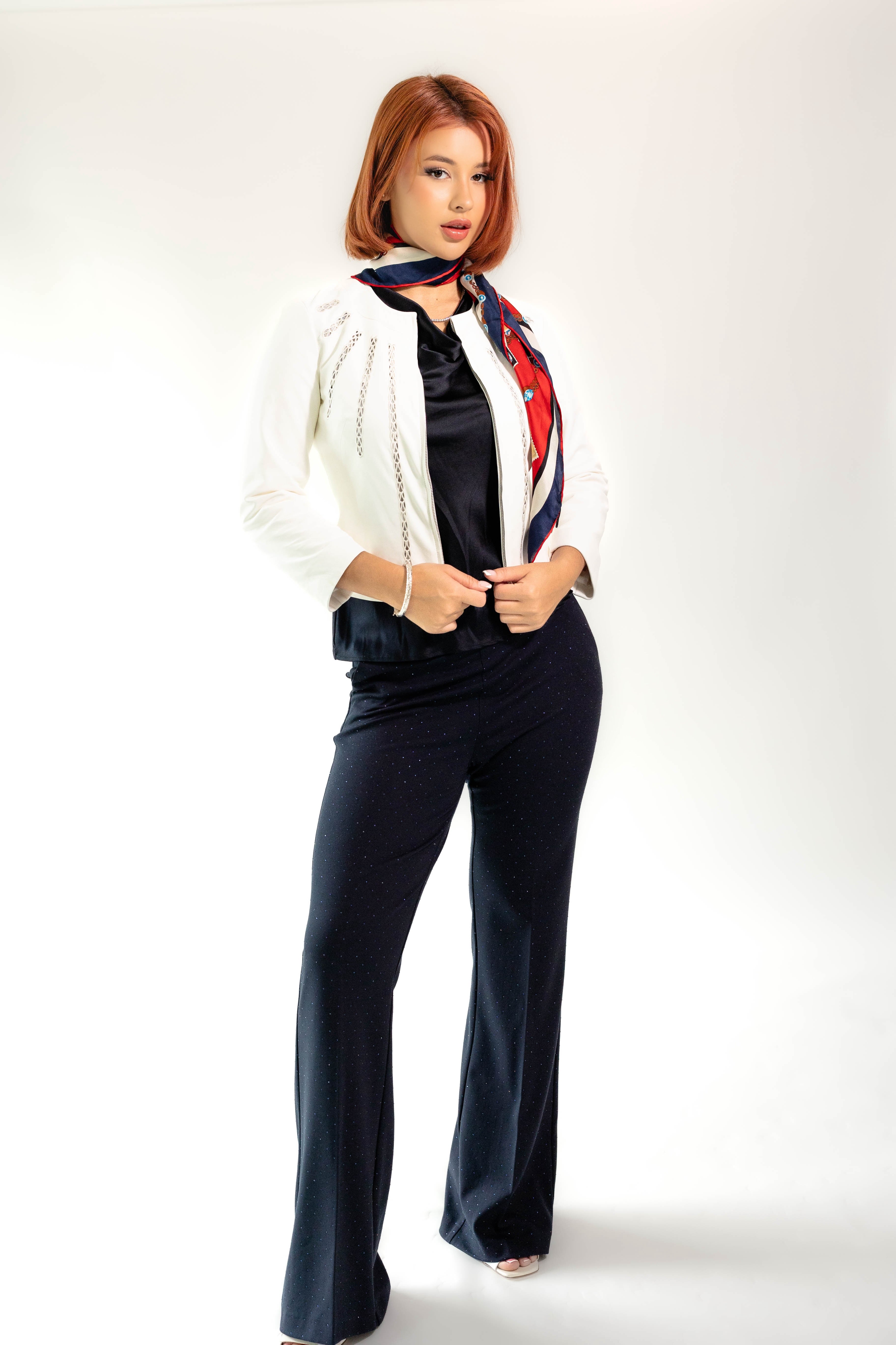 The tailored, short silhouette is designed to flatter and shape the female form, creating a look that is both polished and effortlessly cool. Whether paired with jeans for a casual day out or layered over a dress for an elevated evening look, this jacket offers versatile style for every occasion.