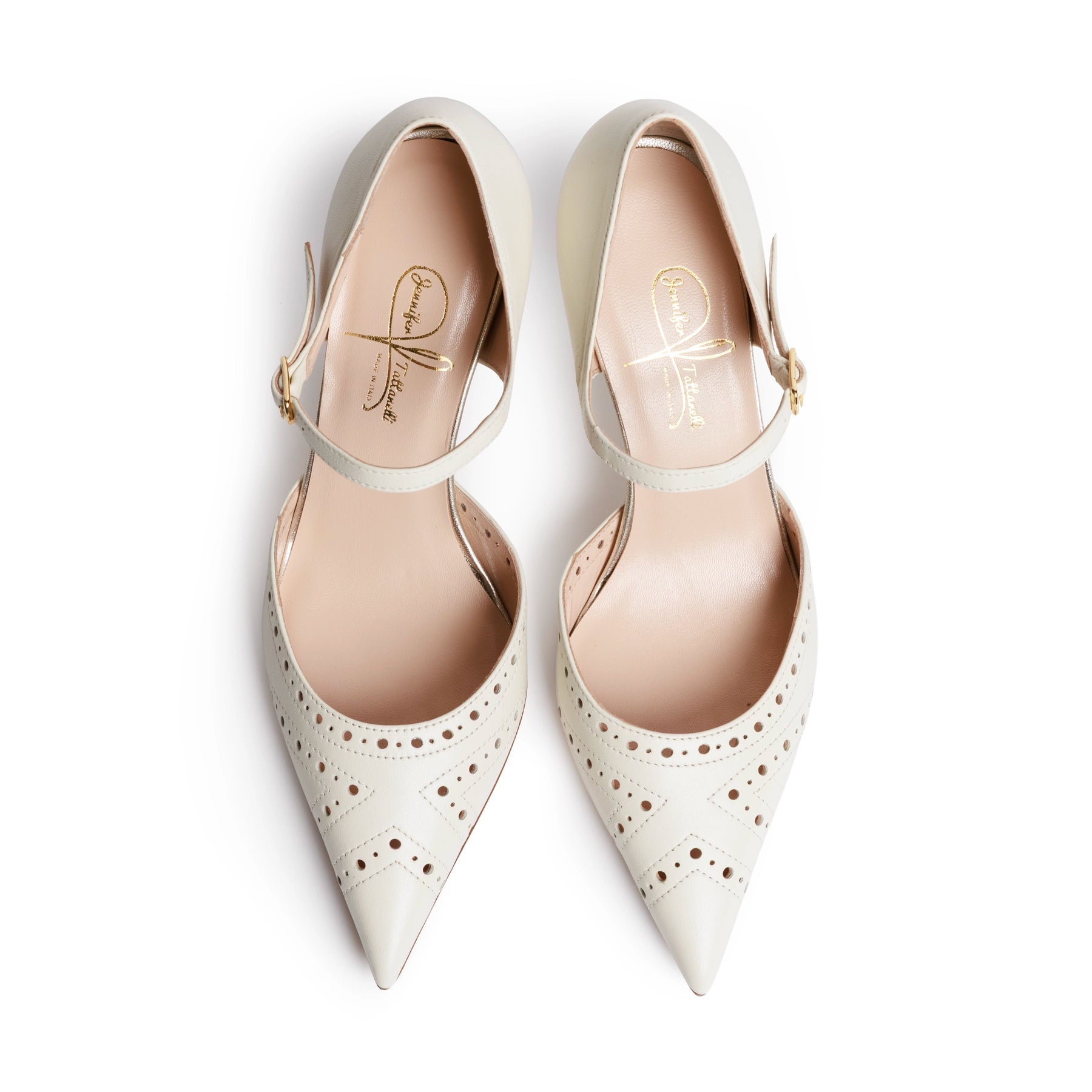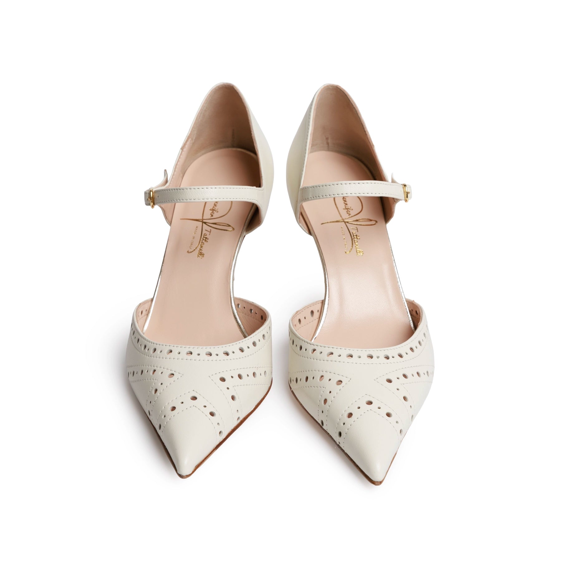 Intricate perforated detailing adds texture and craftsmanship, subtly referencing traditional brogue design while maintaining a light and contemporary feel. The structured upper gently follows the shape of the foot, offering both elegance and support without compromising on comfort.