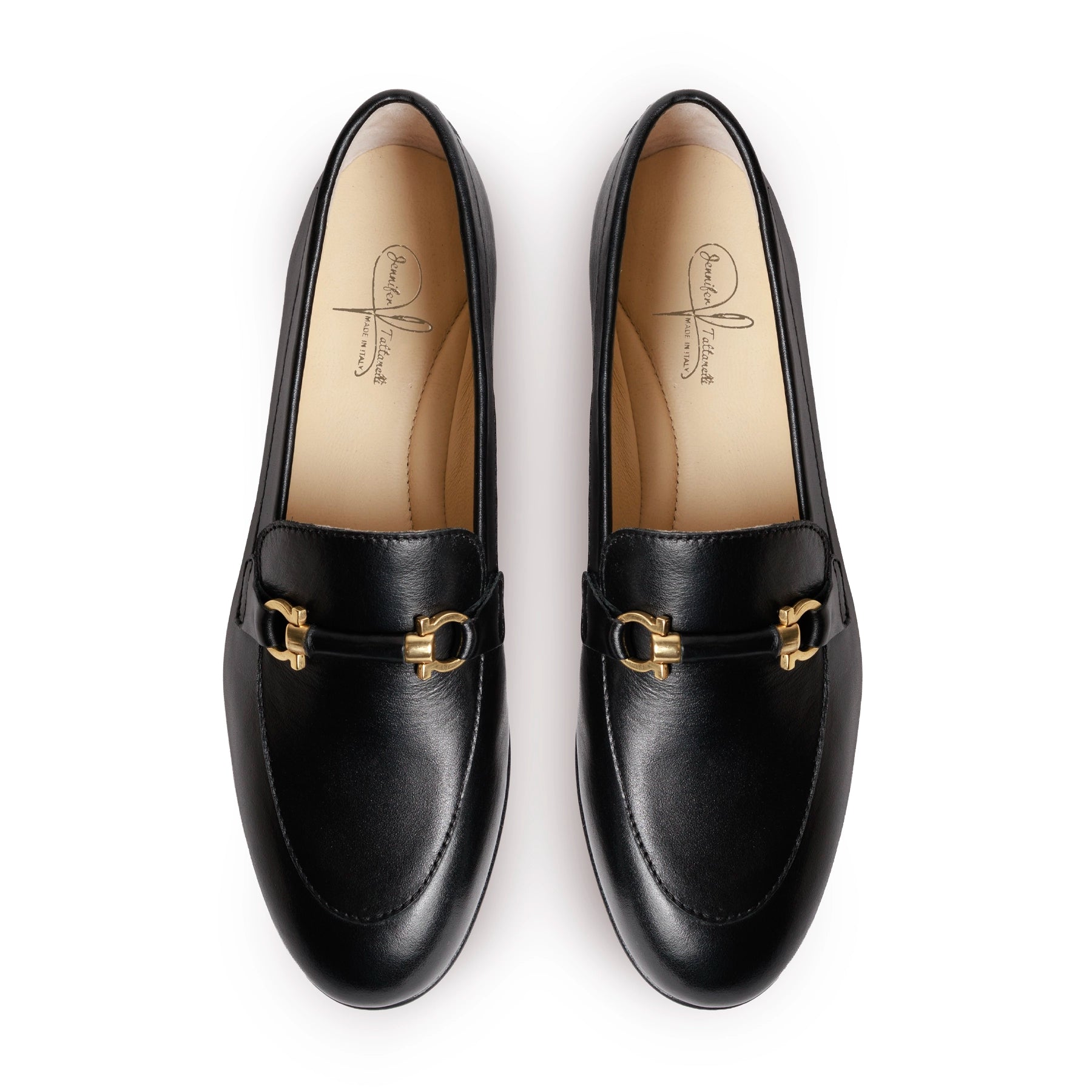 Pair these black Nappa loafers with tailored trousers, midi skirts, or cropped denim for a polished yet relaxed ensemble. Perfect from office to evening, they embody the quiet luxury of Italian-made footwear — refined, versatile, and unmistakably Florentine.