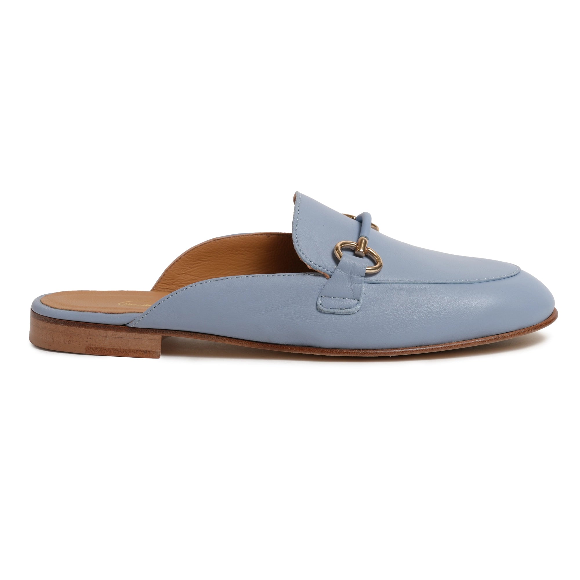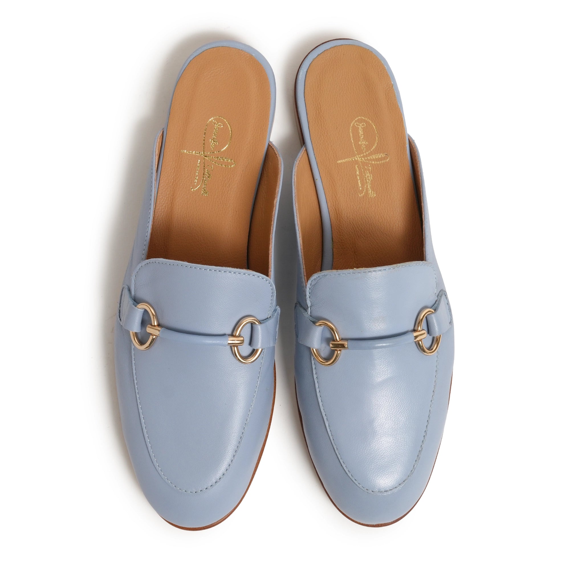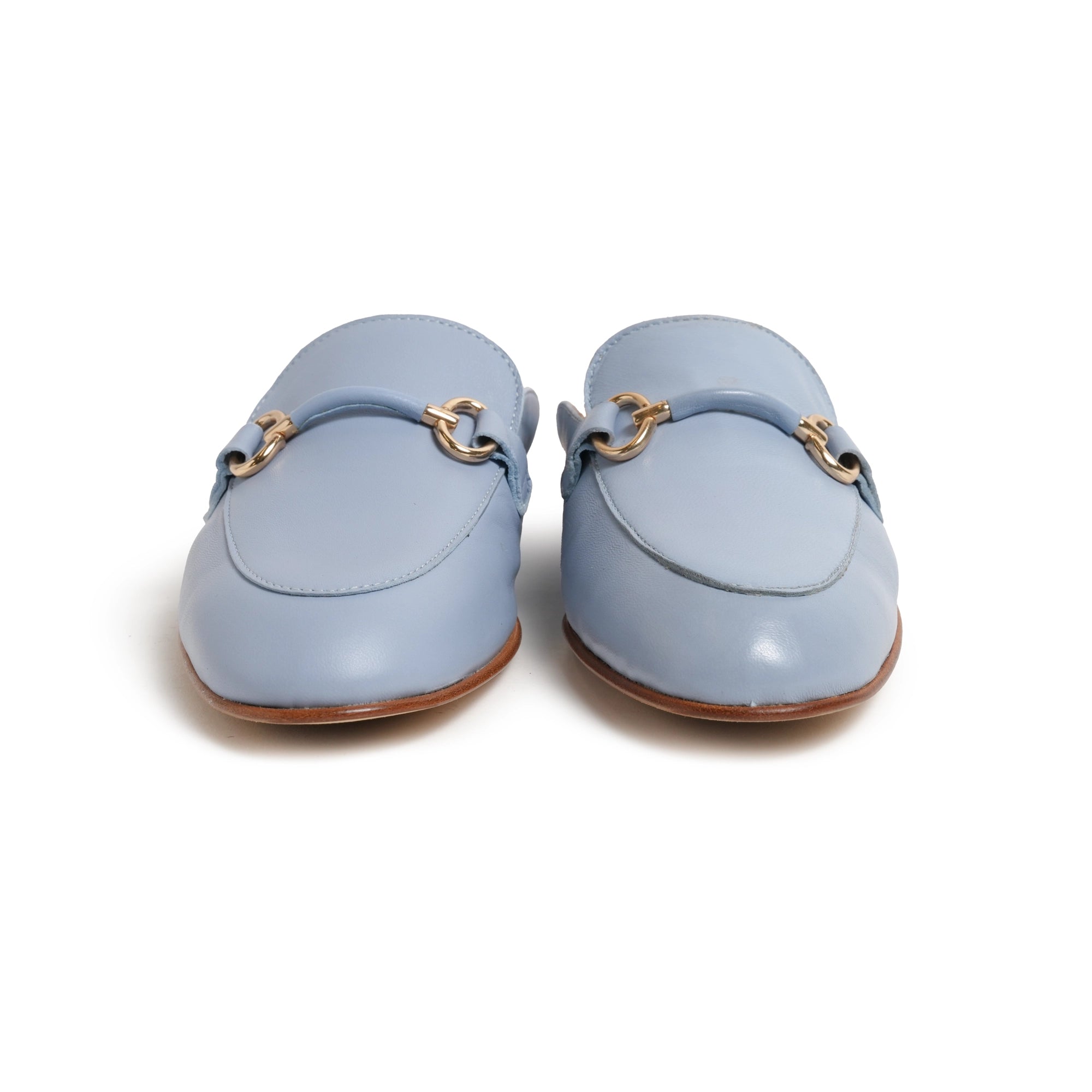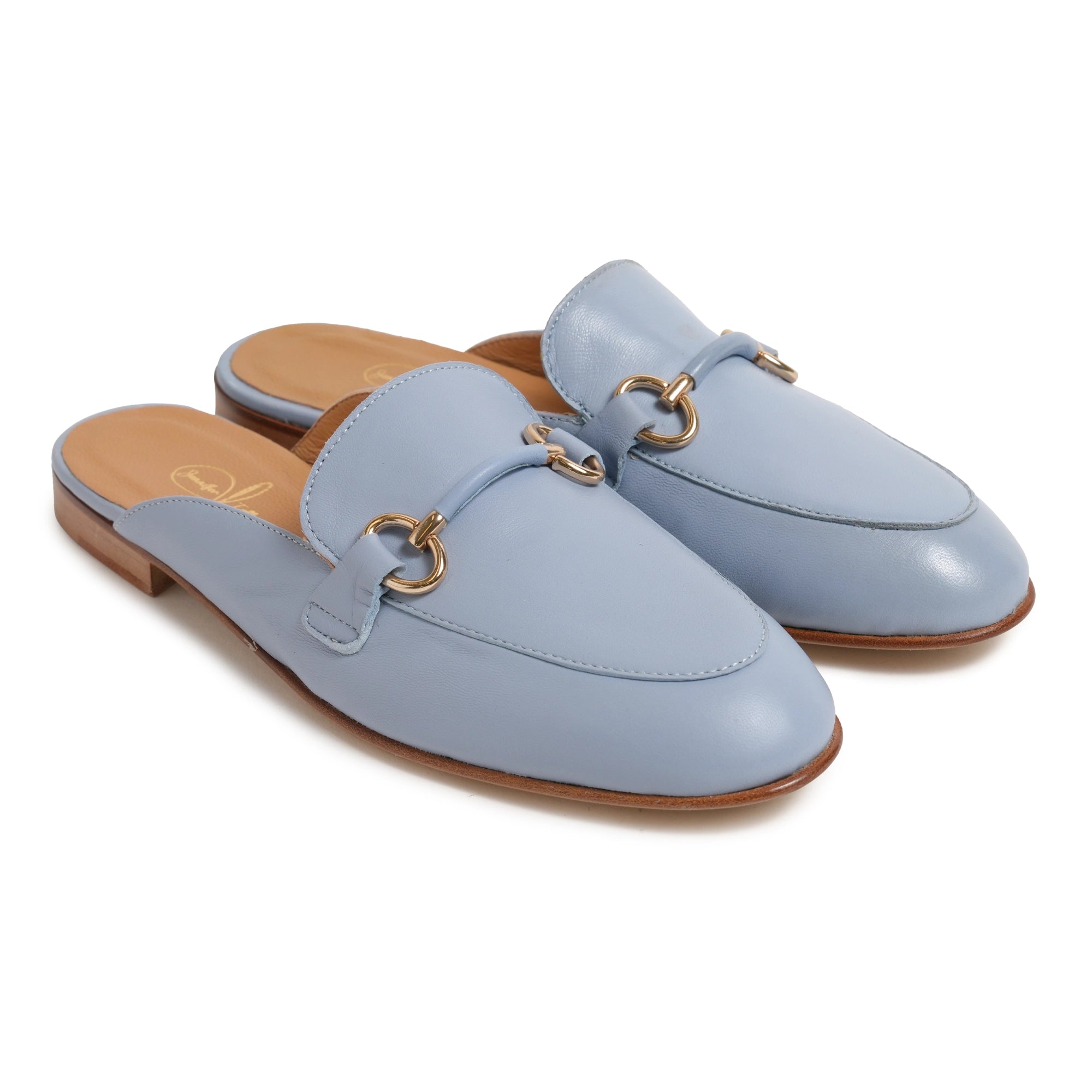 Women's Leather Horsebit Mule Loafers in Nappa Celeste