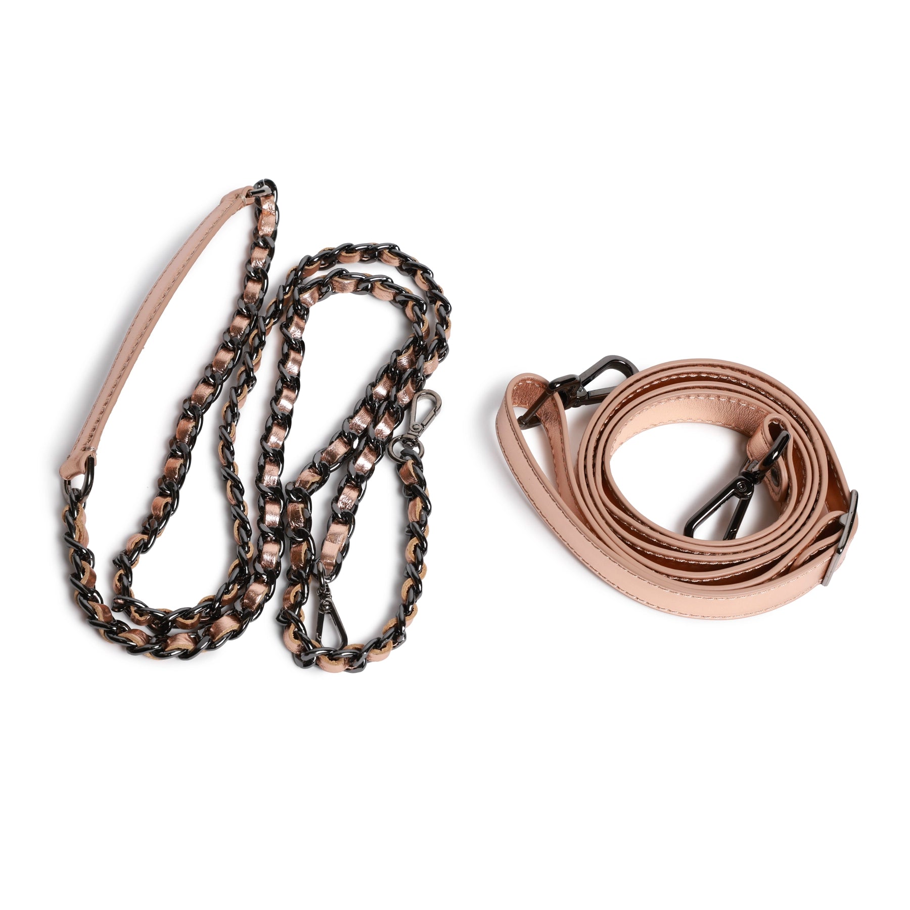 Designed for versatility, it features two interchangeable chains for a customizable crossbody style—one refined and elegant, the other more contemporary for day-to-night transitions. Inside, the bag is thoughtfully lined in suede, offering a soft, luxurious finish.