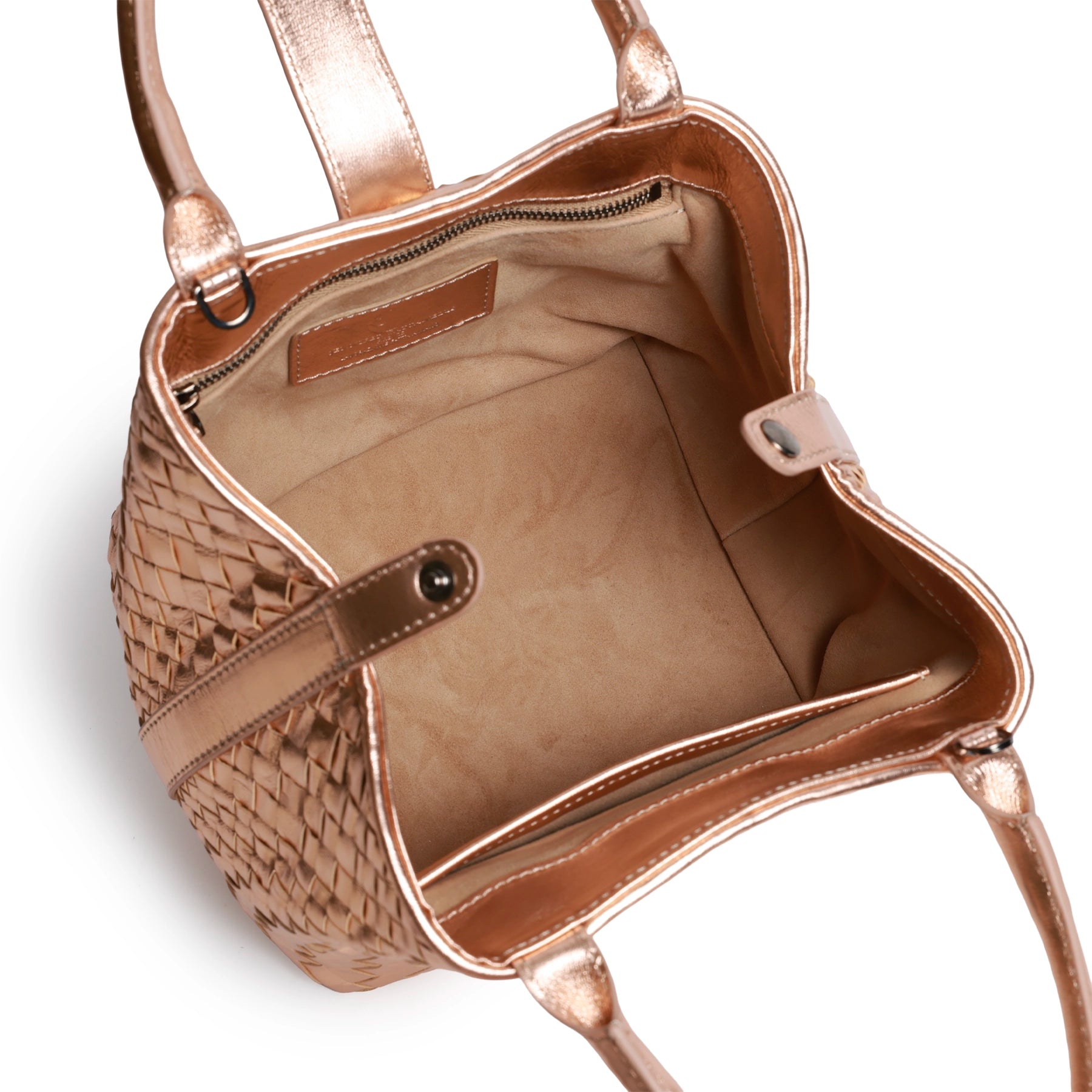 Women's Leather Lucia Bag Intrecciato Optical in Laminated Rose Gold
