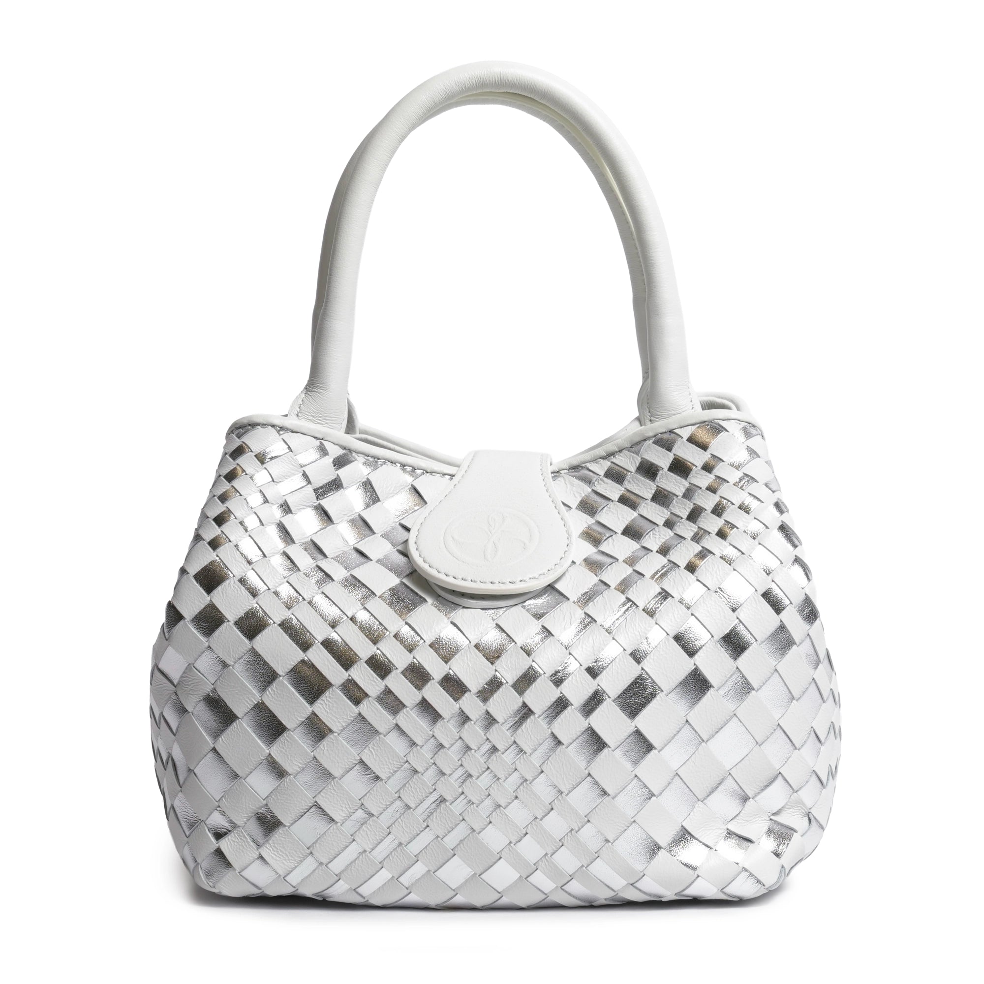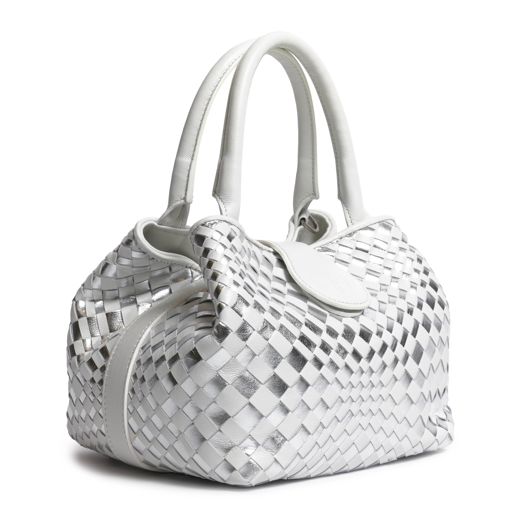 Women's Leather Lucia Bag Intrecciato Optical in Nappa White and Silver