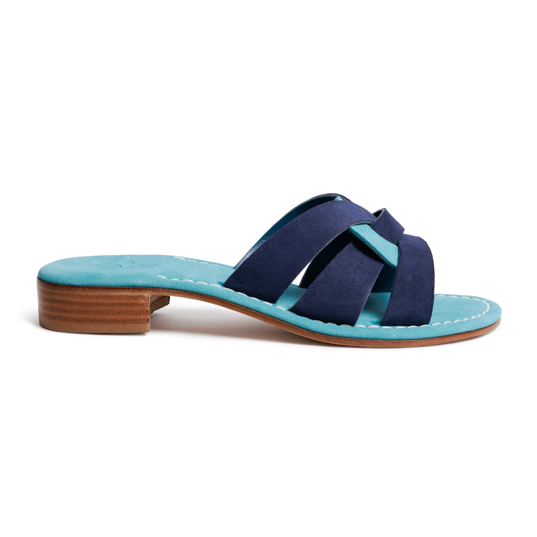 The low stacked leather heel provides subtle lift while ensuring all-day comfort, making this sandal ideal for both city wear and relaxed summer escapes. The cushioned suede insole molds naturally to the foot, while the clean, open silhouette allows for breathable wear during warmer months. Elegant yet understated, this slide is a timeless wardrobe staple that balances luxury, comfort, and versatility.